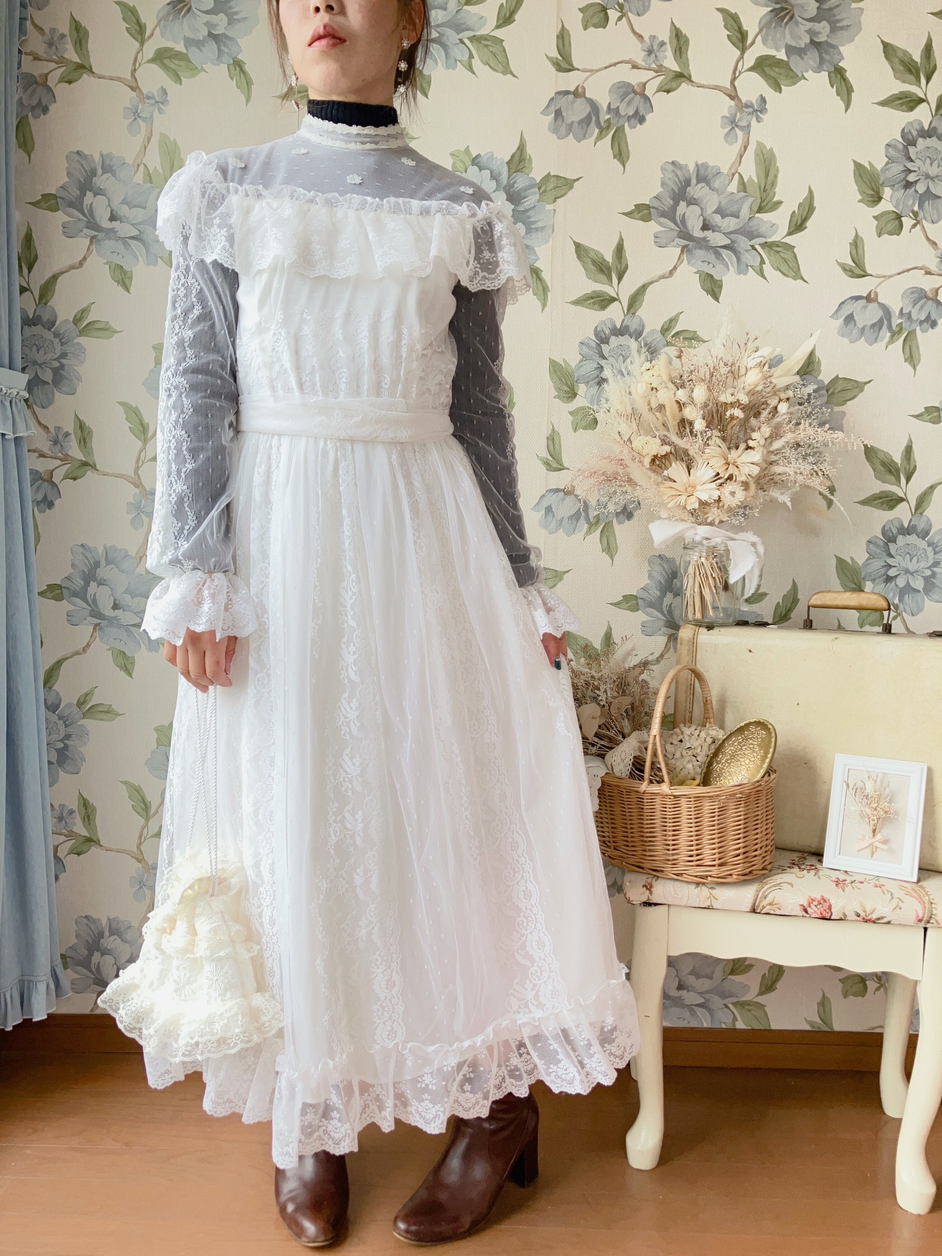 繊細で柔らかいレースとチュールがとっても美しいアイボリーワンピース♡