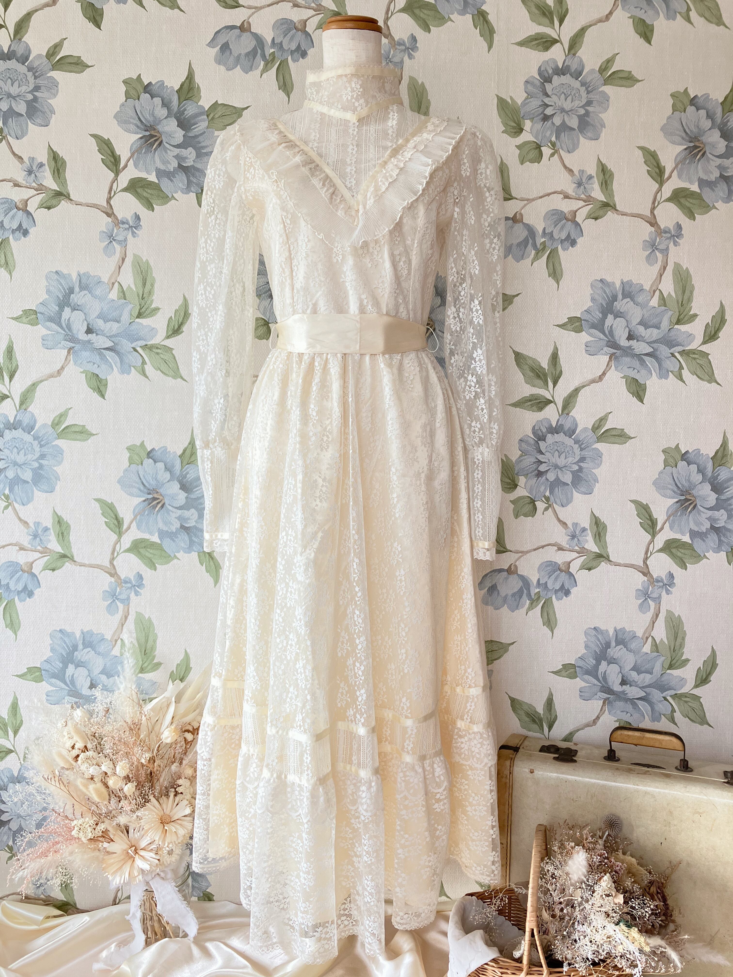 GUNNE SAX クリームフラワーレースワンピース