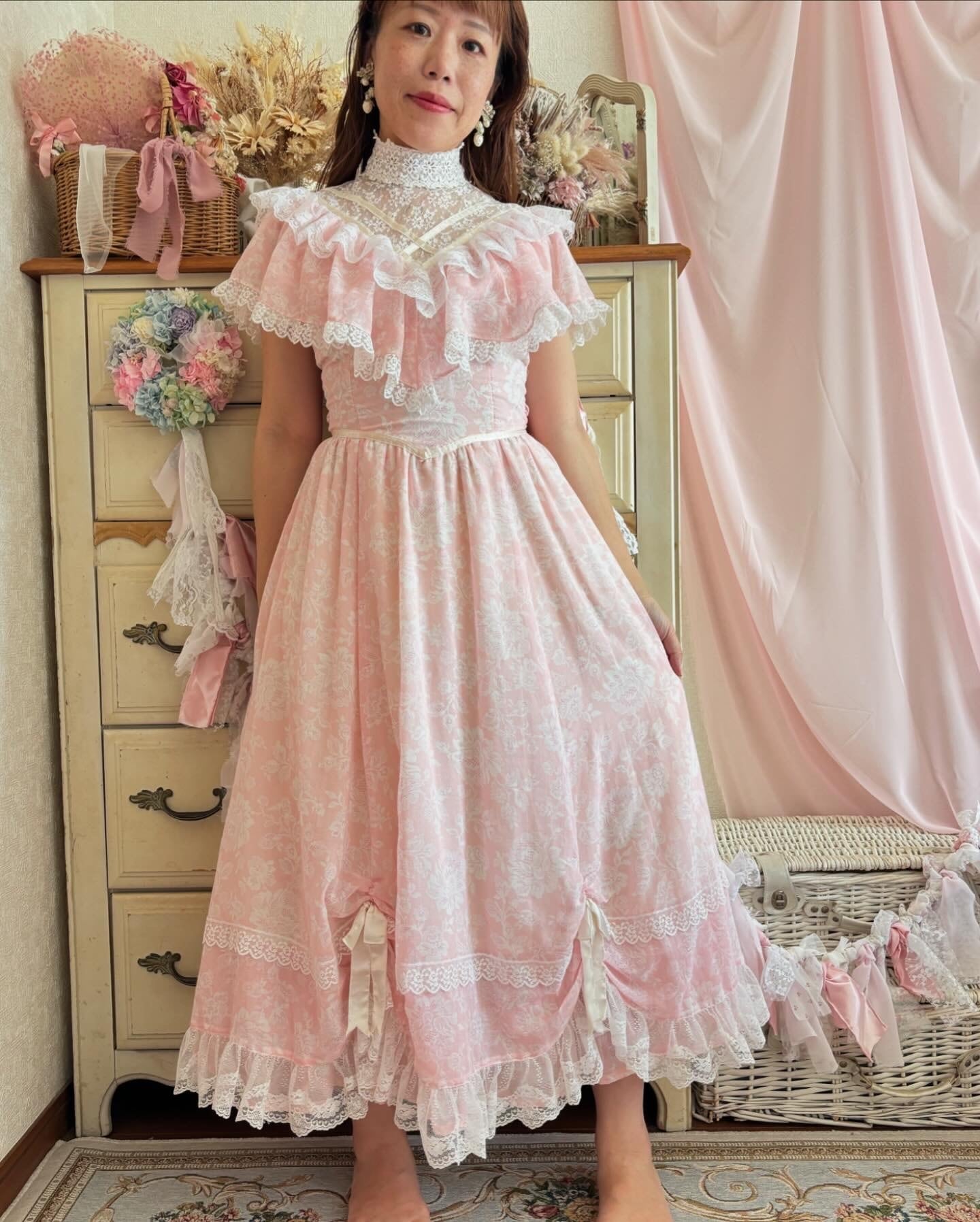 GUNNE SAX ピンクレースフラワープレーリードレス